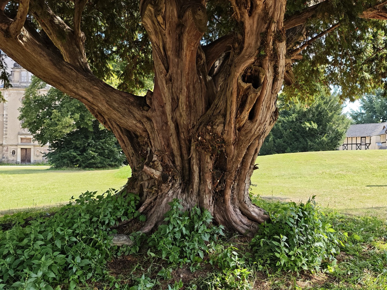 Einige andere Eiben um das Schloss sind bereits Naturdenkmale, aber unauffällig mit dünneren Stämmen und ohne besondere Erscheinungsform, wie sie bei der Schlosseibe ausgeprägt ist.